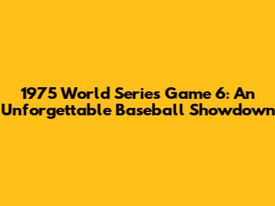 1975 World Series Game 6: A Thrilling Baseball Classic