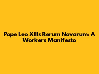 Pope Leo XIII's Rerum Novarum: A Worker's Manifesto