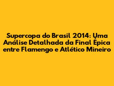 A Supercopa do Brasil é uma competição importante, que valoriza os clubes vencedores do Campeonato Brasileiro e da Copa do Brasil. Em 2014, a final entre Flamengo e Atlético Mineiro elevou o nível da competição, mostrando a força e a tradição do futebol brasileiro. A rivalidade entre os clubes, a qualidade dos jogadores e a emoção da partida criaram um ambiente único, que ficará marcado na memória dos torcedores.